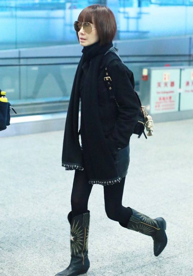 80斤陈鲁豫和110斤刘嘉玲,穿黑丝袜长筒靴