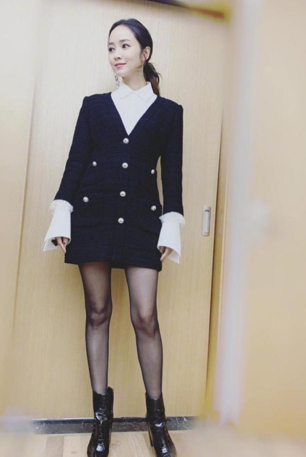 侯佩岑穿黑色丝袜太美了,完美的穿搭,这