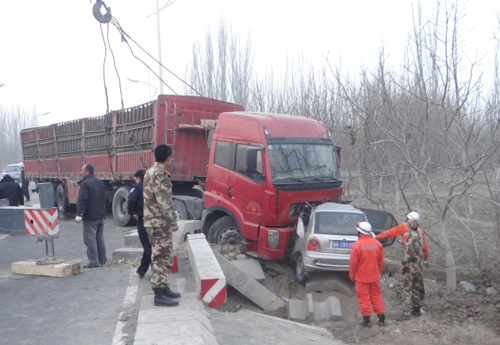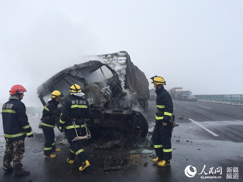 新疆:雾大路滑交通事故频发 两位司机不幸遇