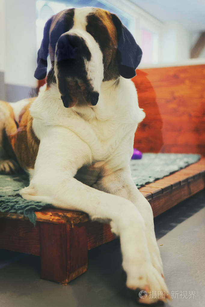 圣伯纳德犬与标志性的桶。圣伯纳是非常大