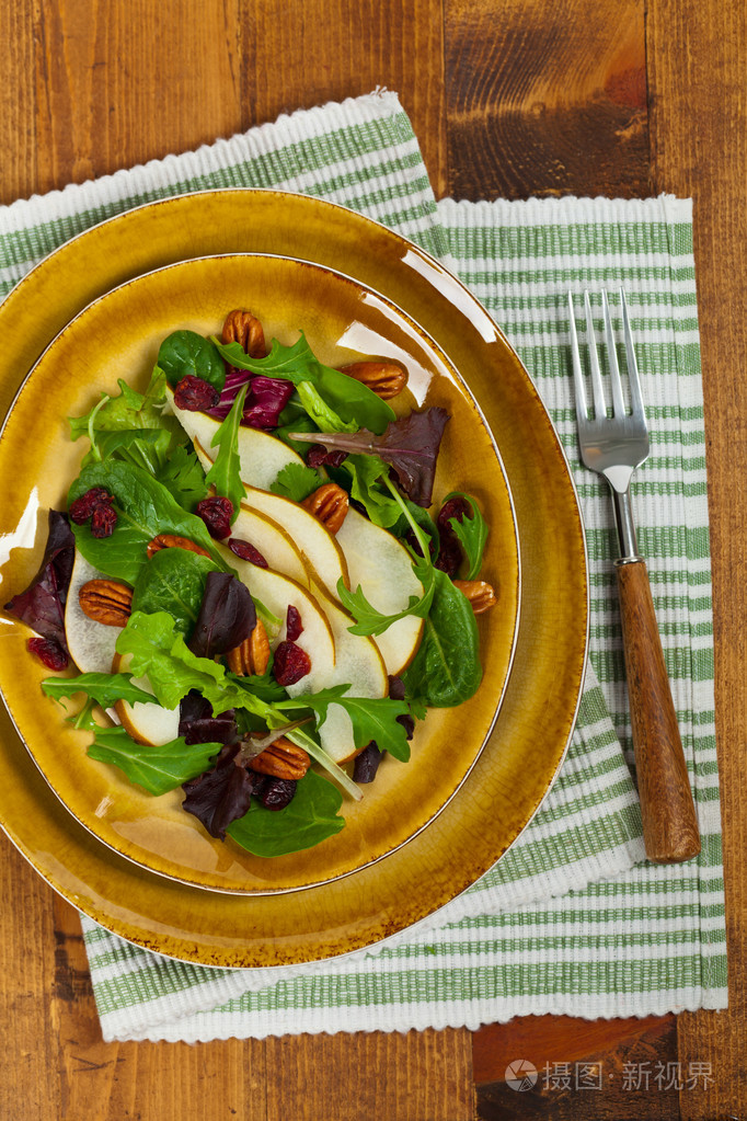 健康双色拉配生菜和胡萝卜放在木制酒泉
