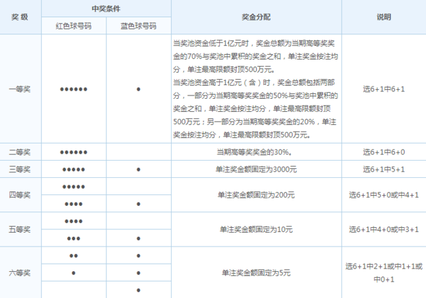 中国福利彩票双色球游戏玩法规则及奖项设置