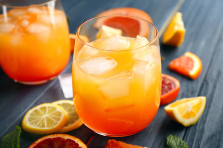 龙舌兰日出鸡尾酒在木板上