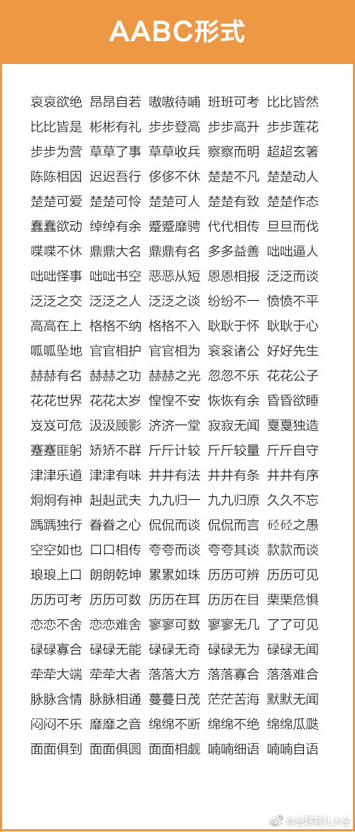 语文词语ABB+ABAB+ABCC+ABAC词汇