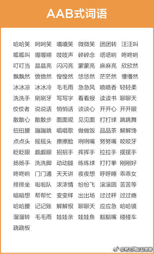 小学语文:按要求写词语,ABB-AAB-AABC式