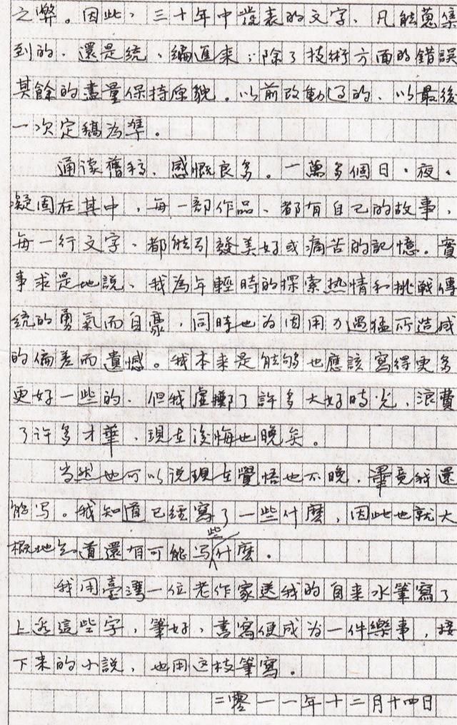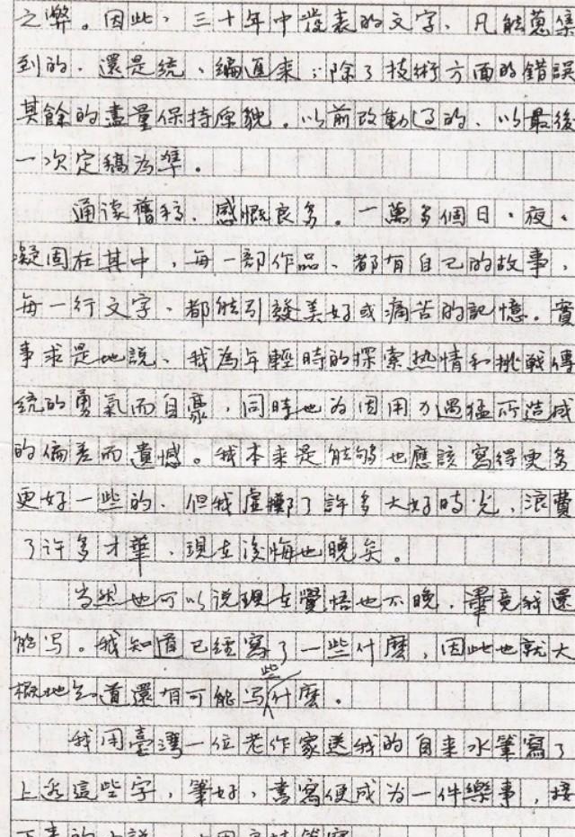 莫言手稿字迹清新,透着书卷气息,比他毛笔