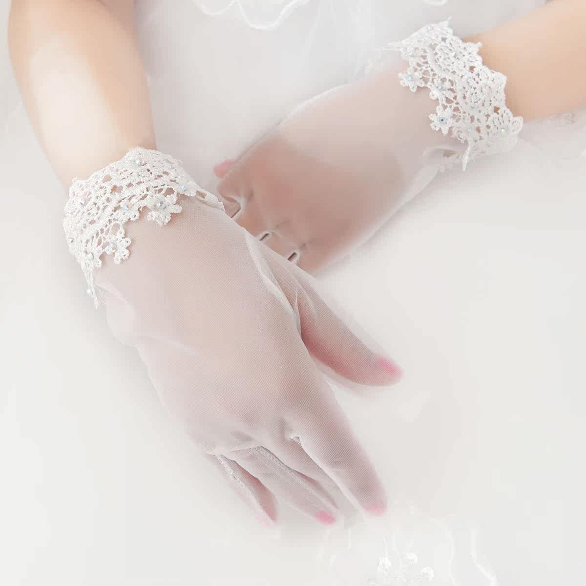 新娘钉珠短婚纱手套新娘配饰婚纱礼服结婚婚礼手套蕾丝春夏季手套