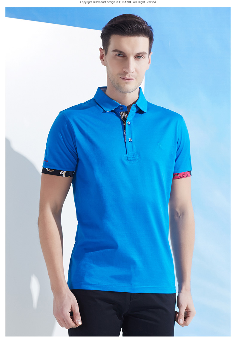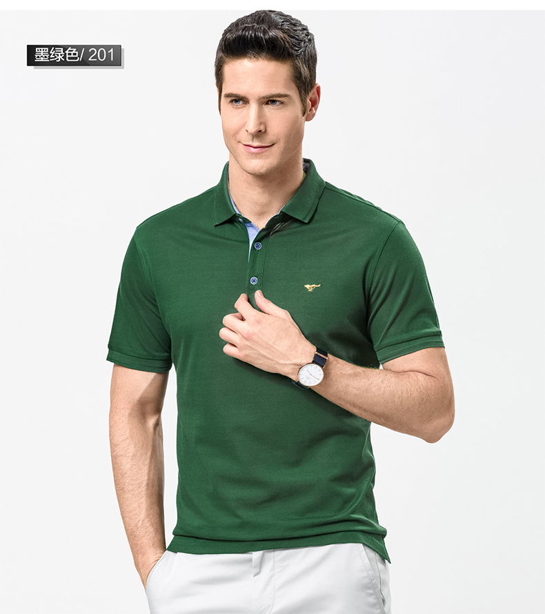 德国商务翻领男短袖t恤衫男士双丝光棉t恤