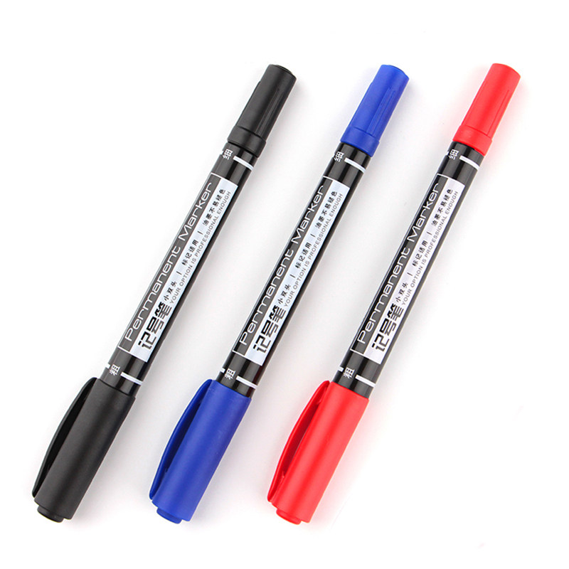 得力6824小双头油性记号笔小头细头马克笔勾线笔儿童绘画学生用黑色美术生描边勾边笔