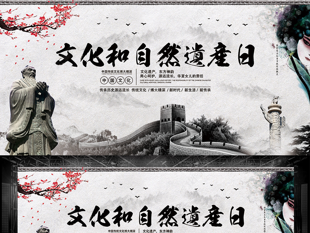 新版中国风文化和自然遗产日海报展板
