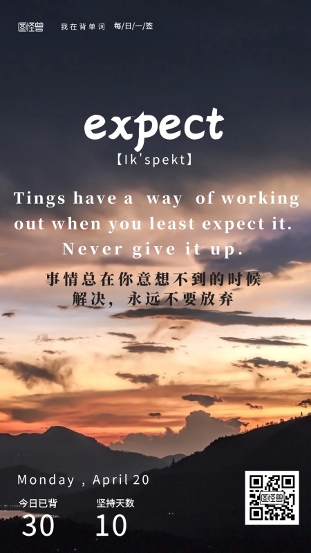 朋友圈英语单词expect打卡签到唯美