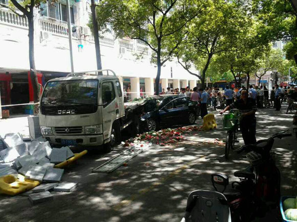 宁波疯狂 比亚迪 撞倒一男一女 被撞男子遭