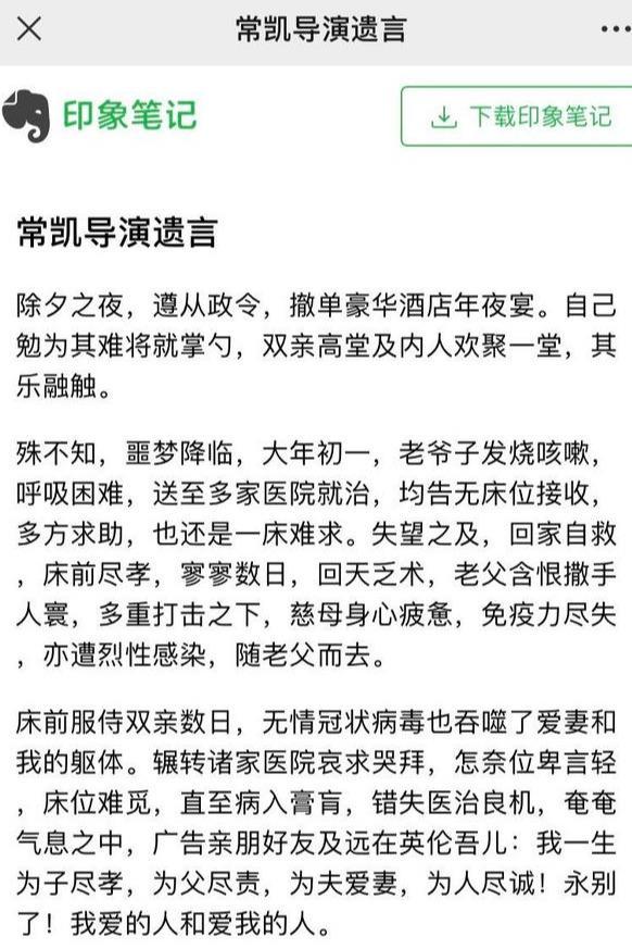 肺炎,湖北电影制片厂导演常凯遗言引泪目