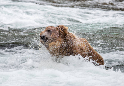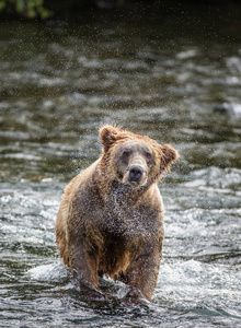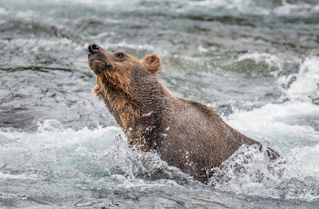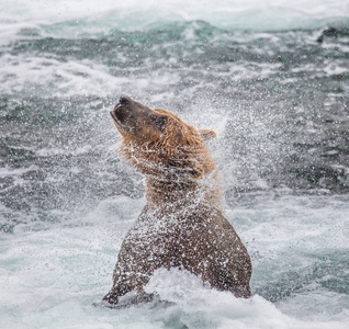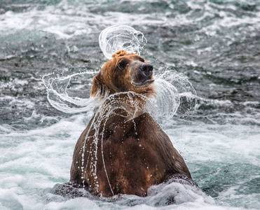 潜水后,一只雄性北极熊试图抖落在它脑袋上的