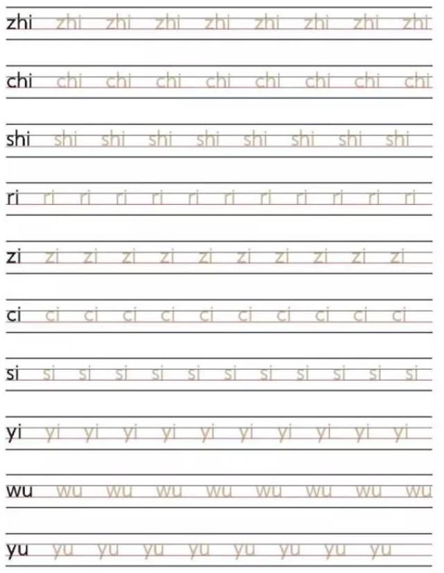 小学汉语拼音声母韵母组合卡片(四线格版)