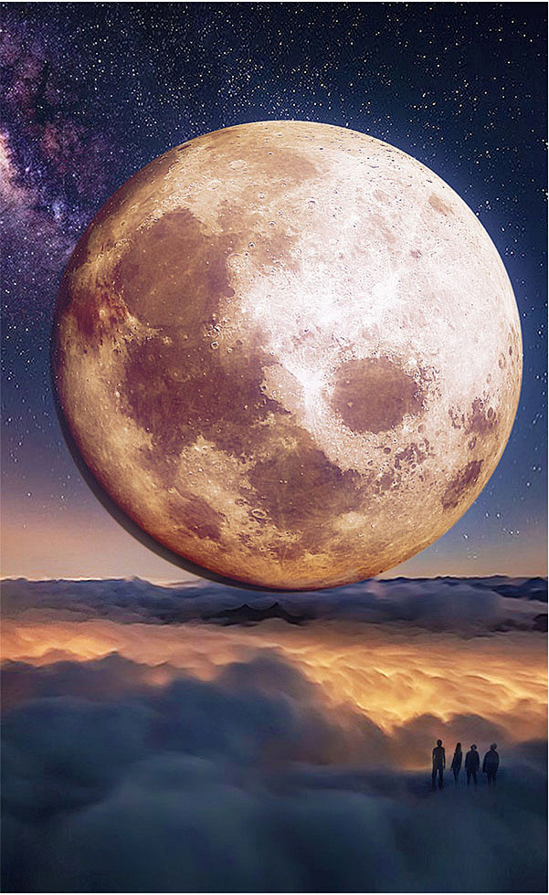 月亮,山,夜晚,艺术,高清(横向),图片,壁纸,