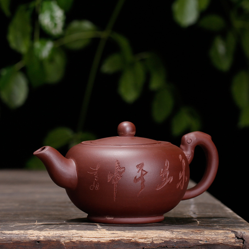 宜兴紫砂壶原矿紫泥紫砂壶玉龙壶手工刻绘