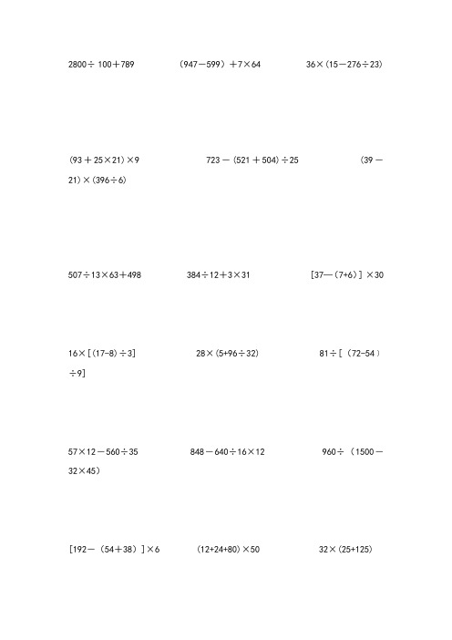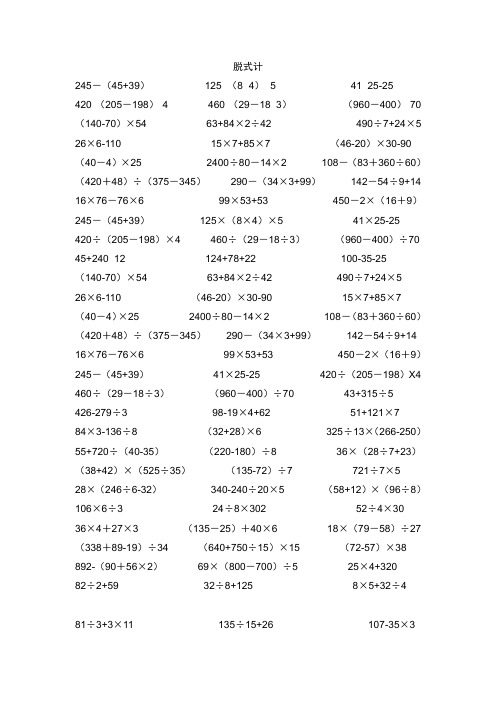 四年级上100道简便运算脱式计算(整理好的可直接打印)
