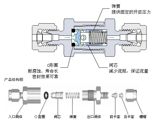 不锈钢单向阀,卡套式单向阀,内螺纹单向阀