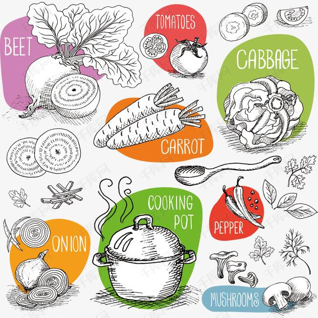 常用的食物,烹饪技巧,蔬菜类,相关英文词汇