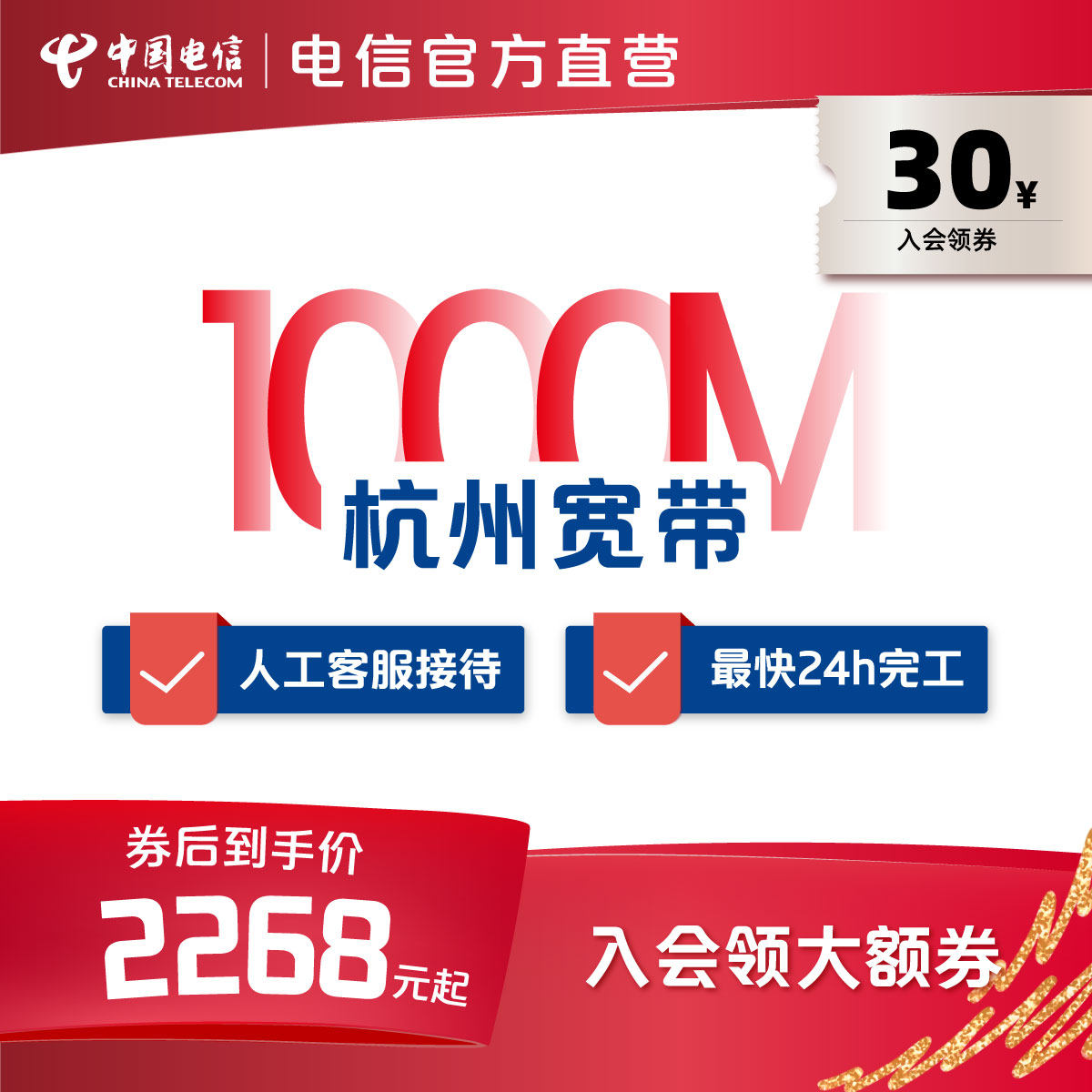 官方旗舰店杭州浙江中国电信宽带办理新装
