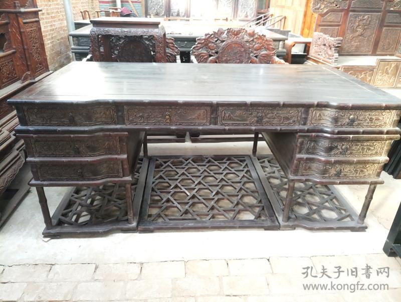 清代小叶紫檀雕刻竹节仙鹤书桌字台古董家具
