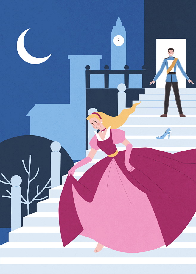 月夜楼梯 午夜12点 水晶鞋 王子与灰姑娘 童话故事插图插画设计PSD ti456a0404