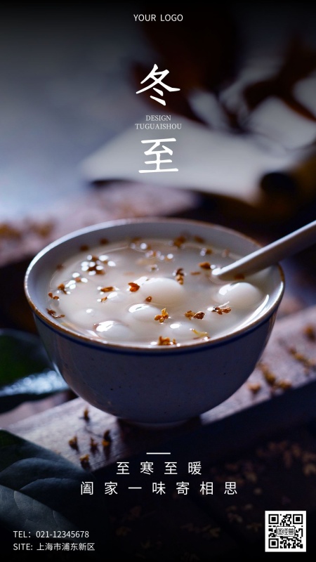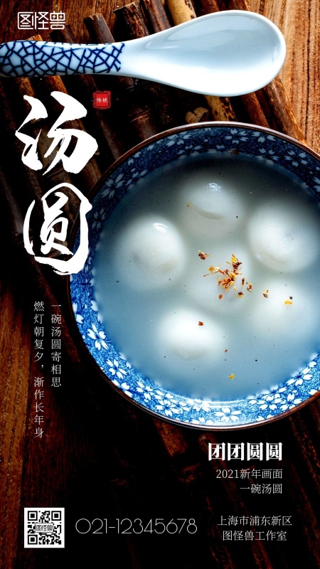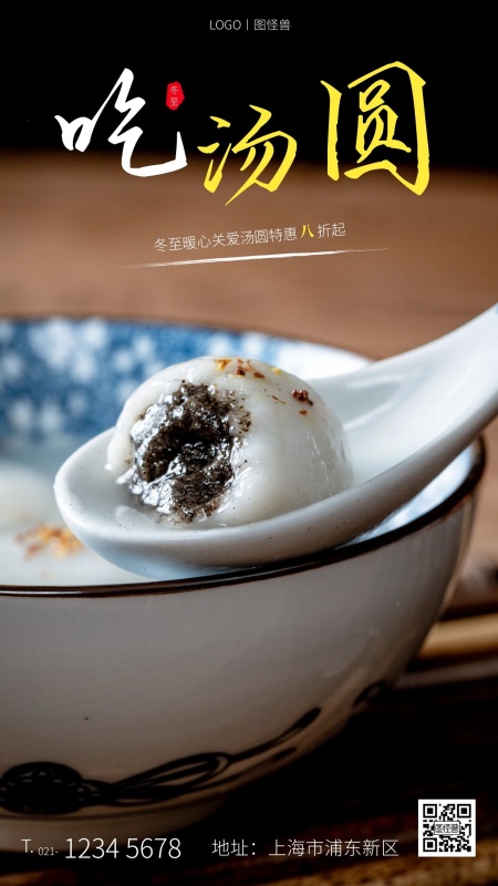冬至餐饮美食汤圆优惠简约大气手机海报