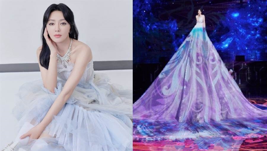 秦岚水蓝透视礼服飘仙气!超梦幻长裙获粉丝