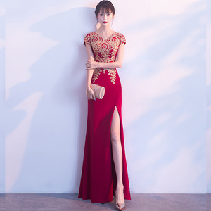 秋季长款宴会晚礼服主持人紫色宴会礼服