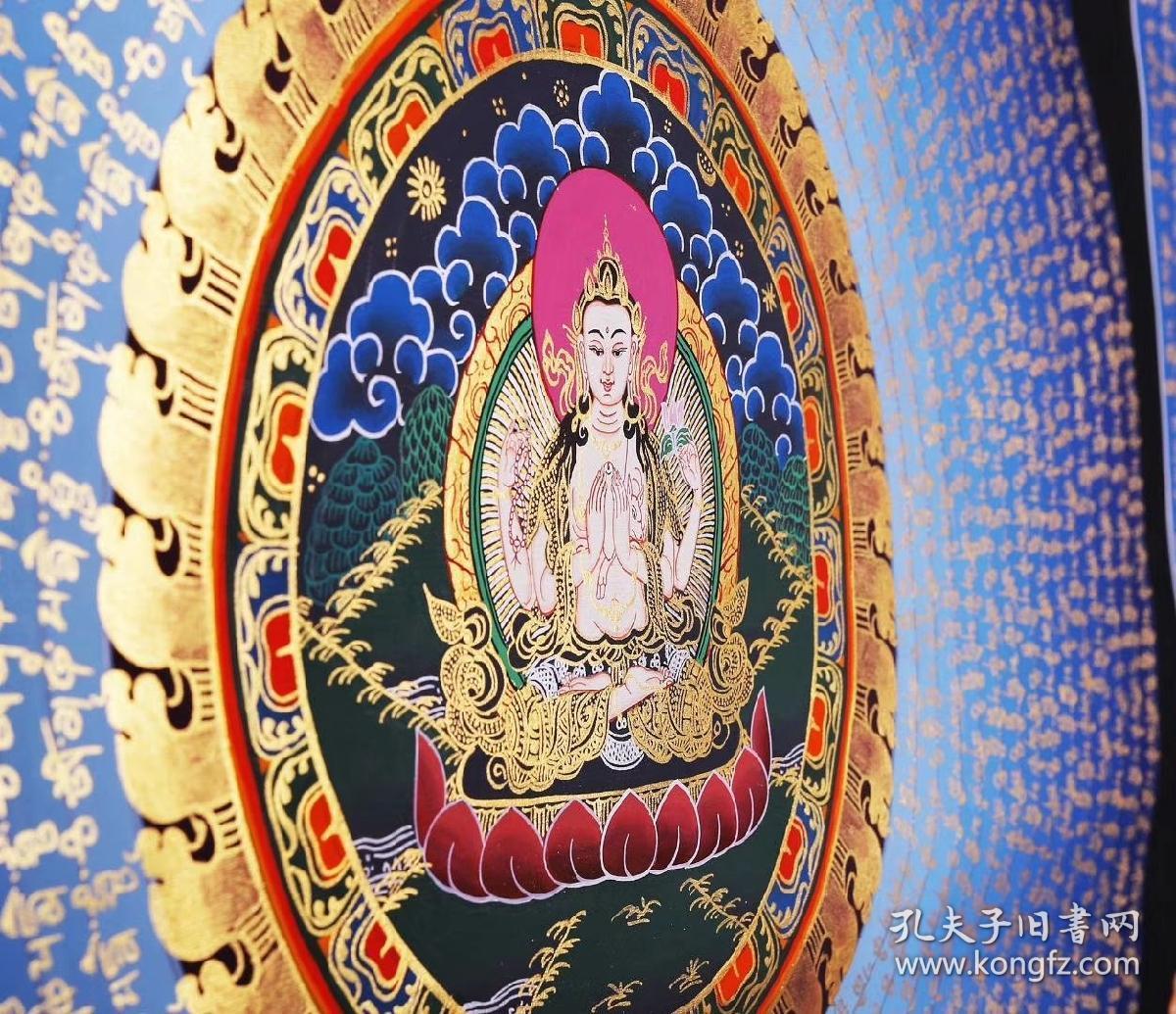 尼泊尔高端手绘唐卡《四臂观音坛城》。