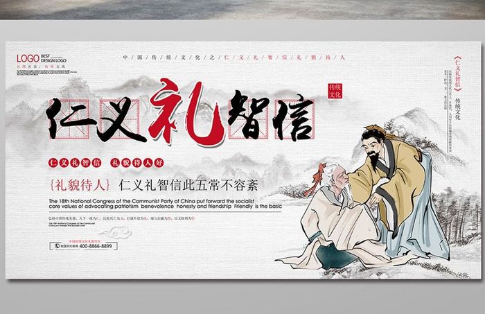 仁义礼智信礼貌待人中国传统文化展板】图片下载-包图网