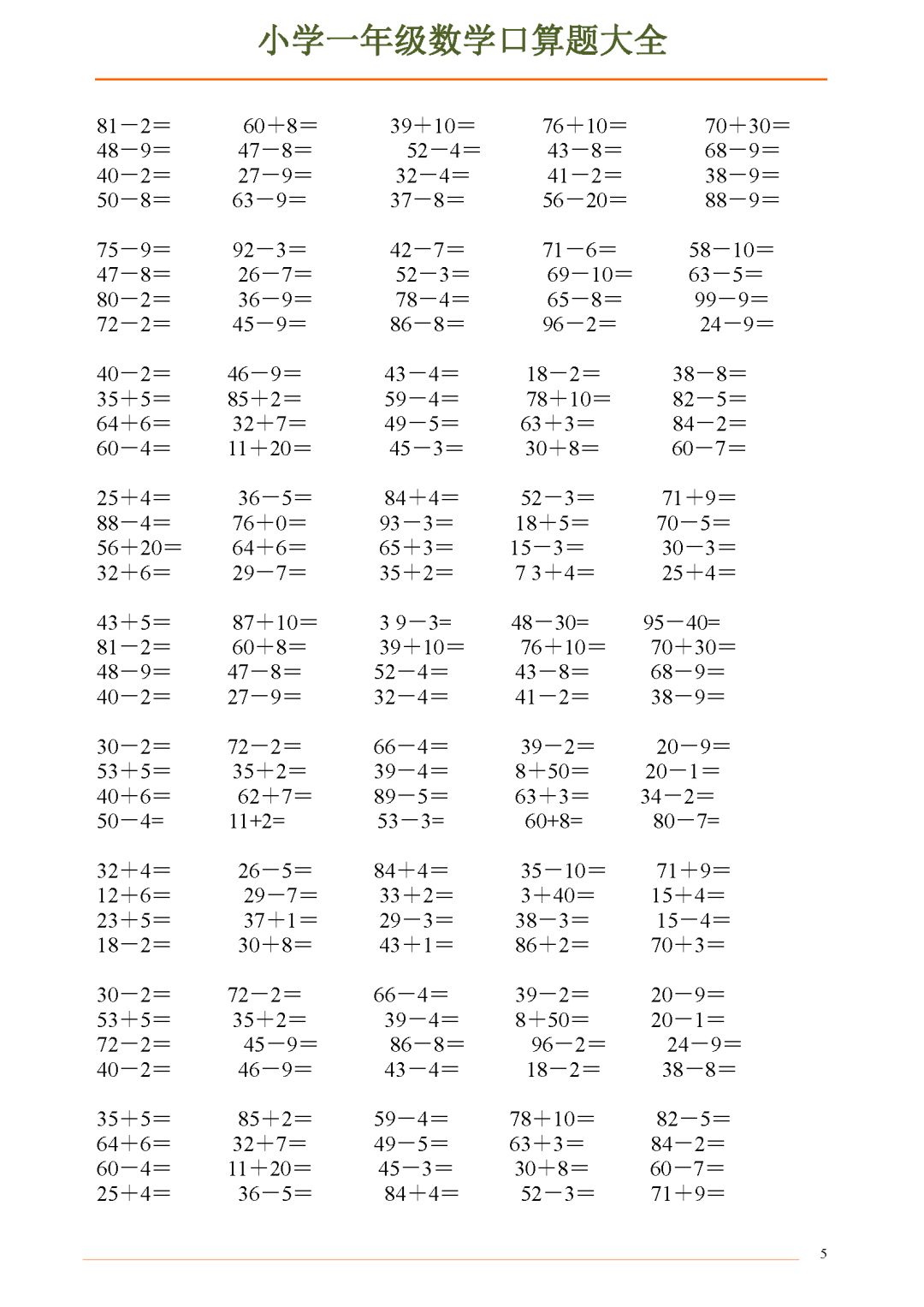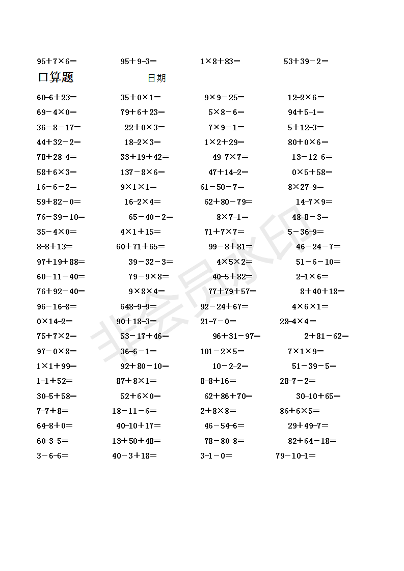 小学三年级数学《寒假口算2400道》(加减乘除全面练习)