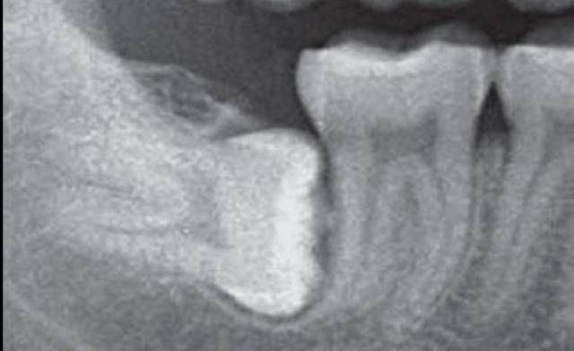 下颌倾斜阻生智齿(下牙斜着长的智齿)