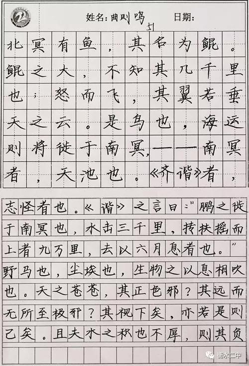 写好美丽方块字,感悟拳拳学子情--衡水市