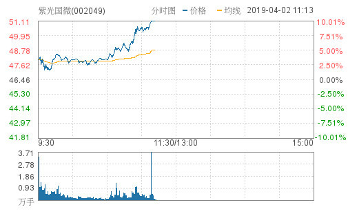 紫光国微早盘封涨停 成交额22.33亿元封单
