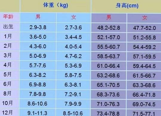 宝宝身高体重标准表,宝宝发育的好不好,一