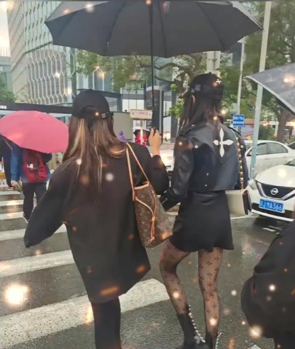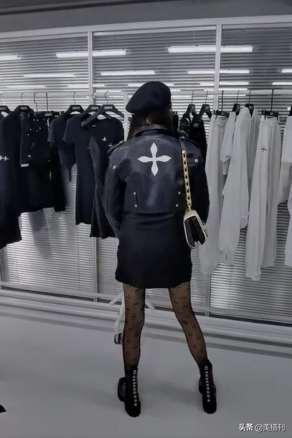 关晓彤穿私服逛街, 皮衣搭黑丝袜尽显好