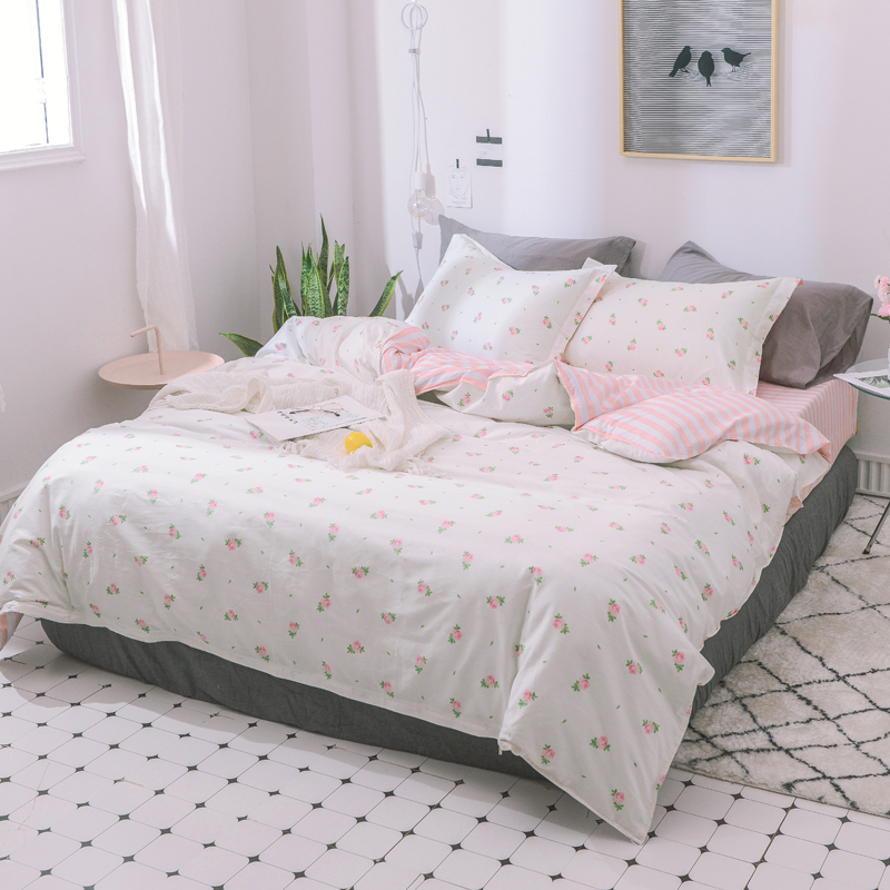13070全棉四件套 1.2m(4英尺)床 红粉柔情米