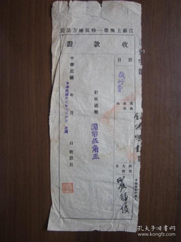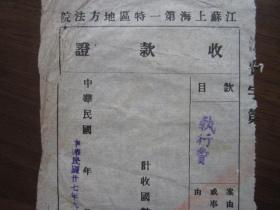 江苏上海第一特区地方法院执行费收款证