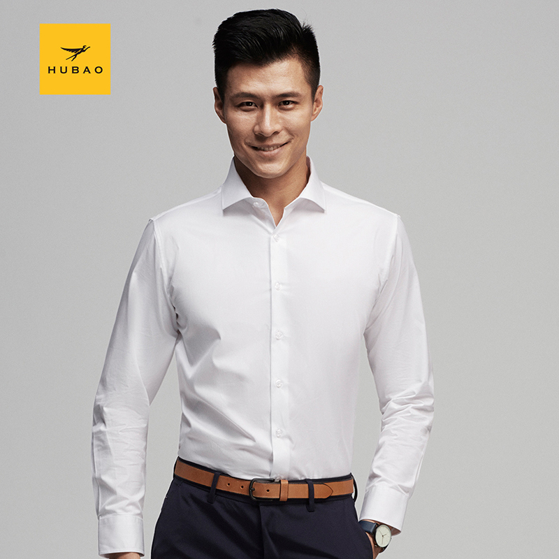 虎豹长袖纯白尖领衬衫男商务正装修身宽松
