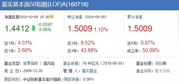 嘉实基本面50指数(LOF)A净值下跌1.06%