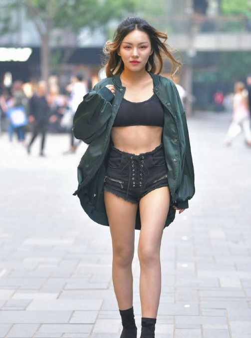 街拍,图六霸气女生腹肌好明显,小编佩服