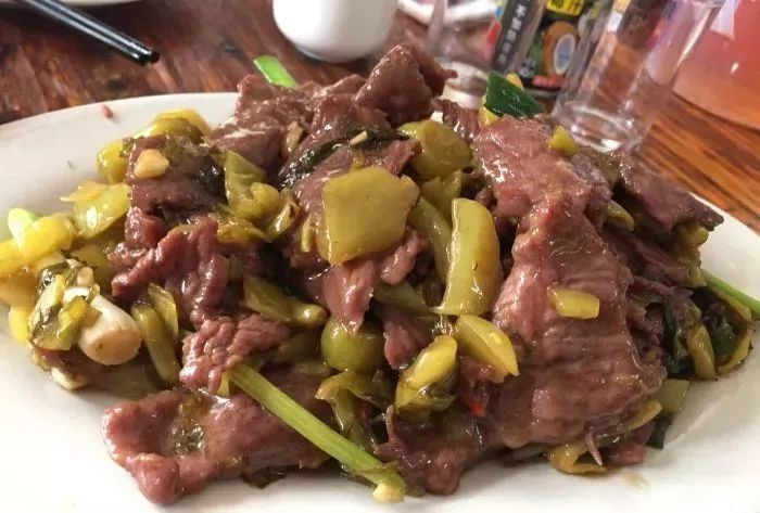 潮汕菜:酸菜炒牛肉、炒薄壳米。潮汕的黄牛肉,炒久了也不会变老,神奇!