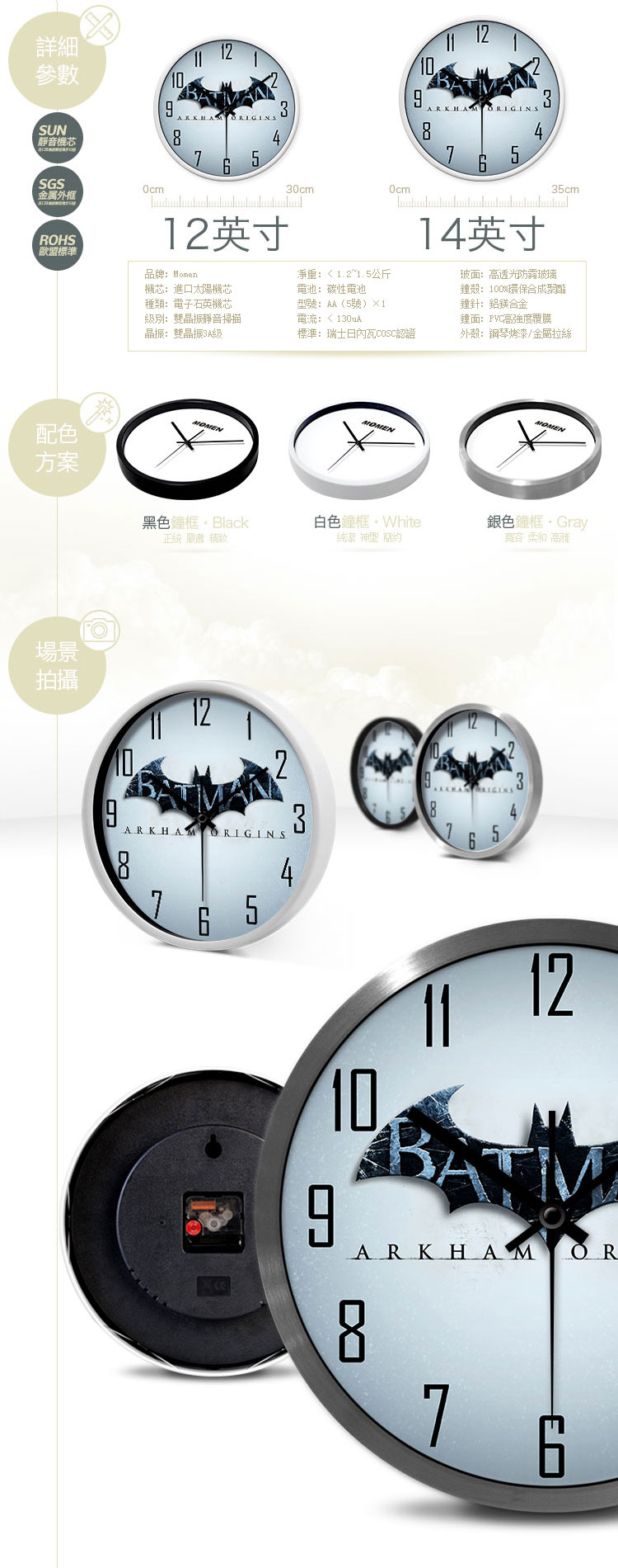 美国电影蝙蝠侠英文字超静音挂钟表HJ