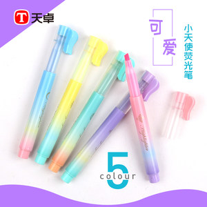 天卓好笔5色荧光笔斜刀头划粗线细线重点标记