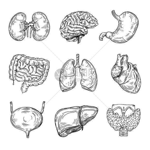 人体内器官工抽取大脑心脏和肾胃膀胱草图