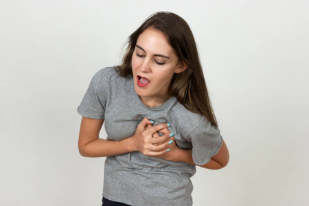 在痛苦中的女人。美丽的年轻女性感觉敏锐