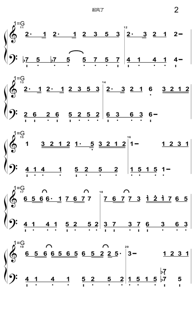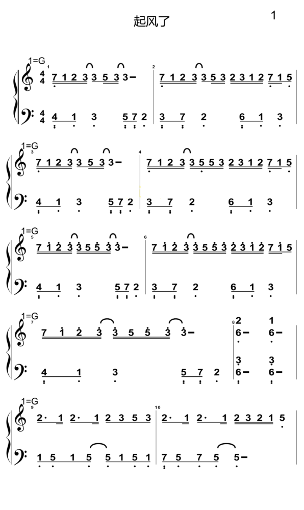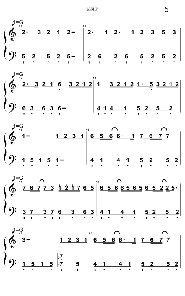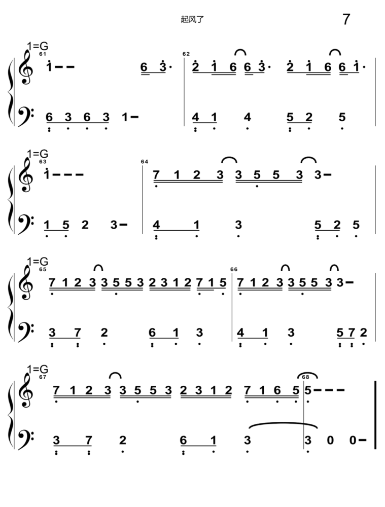 起风了钢琴简谱数字乐谱调六线简谱-虫虫吉他谱免费下载