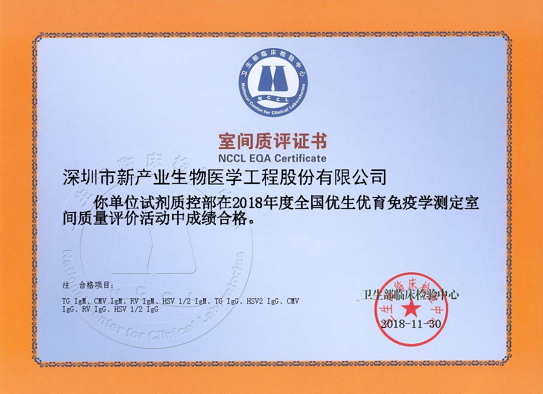 新产业生物第八年荣获卫生部临检中心室间